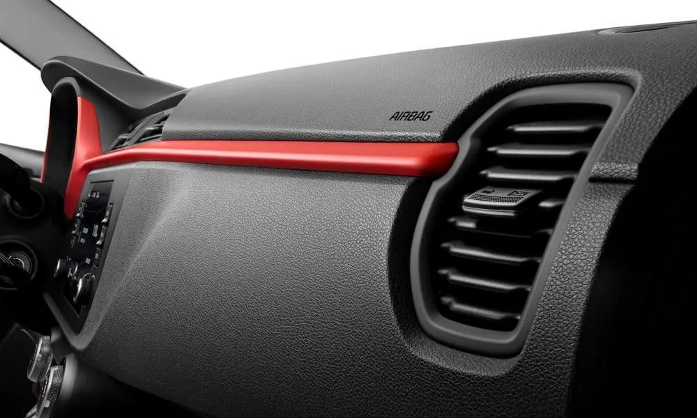 | Спортивный красный молдинг на центральной панели |