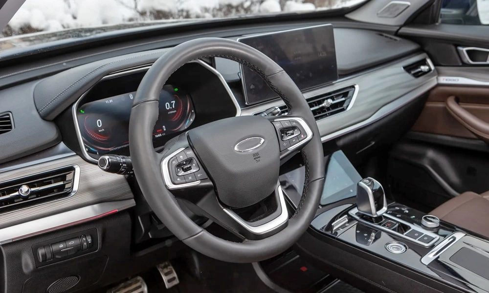| Отделка интерьера и сидений экокожей чёрного цвета |